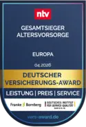 Die EUROPA überzeugte mit ihrer hervorragenden Mischung aus Preis, Leistung, Qualität und Service. Nach 2023, 2024 und 2025 setzte sie sich auch in diesem Jahr als „Gesamtsieger Altersvorsorge“ durch. Verliehen wird der Preis durch den Fernsehsender n-tv, das Deutsche Institut für Service-Qualität sowie die Ratingagentur Franke und Bornberg.